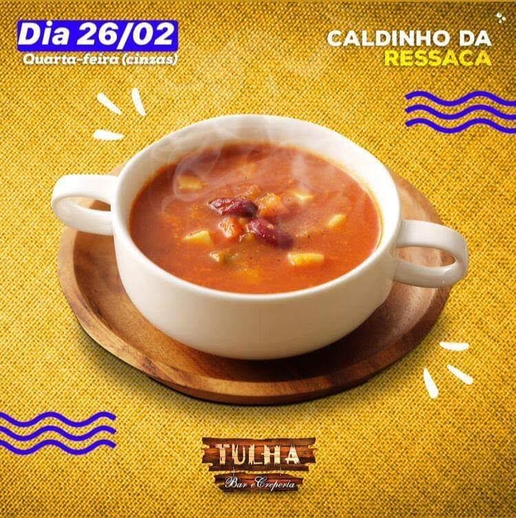 Então vem pro Tulha que quarta-feira (26/02) tem #caldinhodaressaca com a maior variedade de de Caldos + Feijoada Magra por apenas R$30,00.