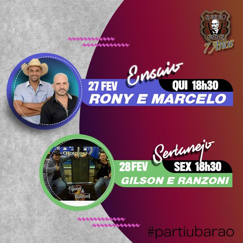 Barão Beer – hoje, sexta-feira (28) animação de Gilson e Ranzoni a partir das 18h30!