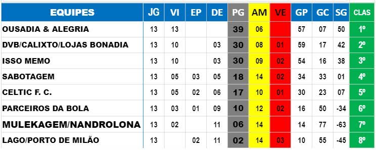 Na primeira partida do sábado, o DVB/Calixto/Lojas Bonadia venceu por 7 a 2 a equipe Parceiros da Bola e o artilheiro da partida foi Diego Paulino, que anotou três gols para a equipe DVB. Com essa vitória, o time assume a vice liderança da competição.