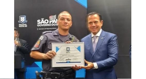 O Governador João Doria e o Secretário da Segurança Pública, General João Camilo Pires de Campos, homenagearam nesta segunda-feira (9) 22 policiais militares, oito civis e seis técnico-científicos da capital, Grande São Paulo e regiões de São José dos Campos, Ribeirão Preto, Sorocaba, Presidente Prudente e Piracicaba com o certificado Policial Nota 10.