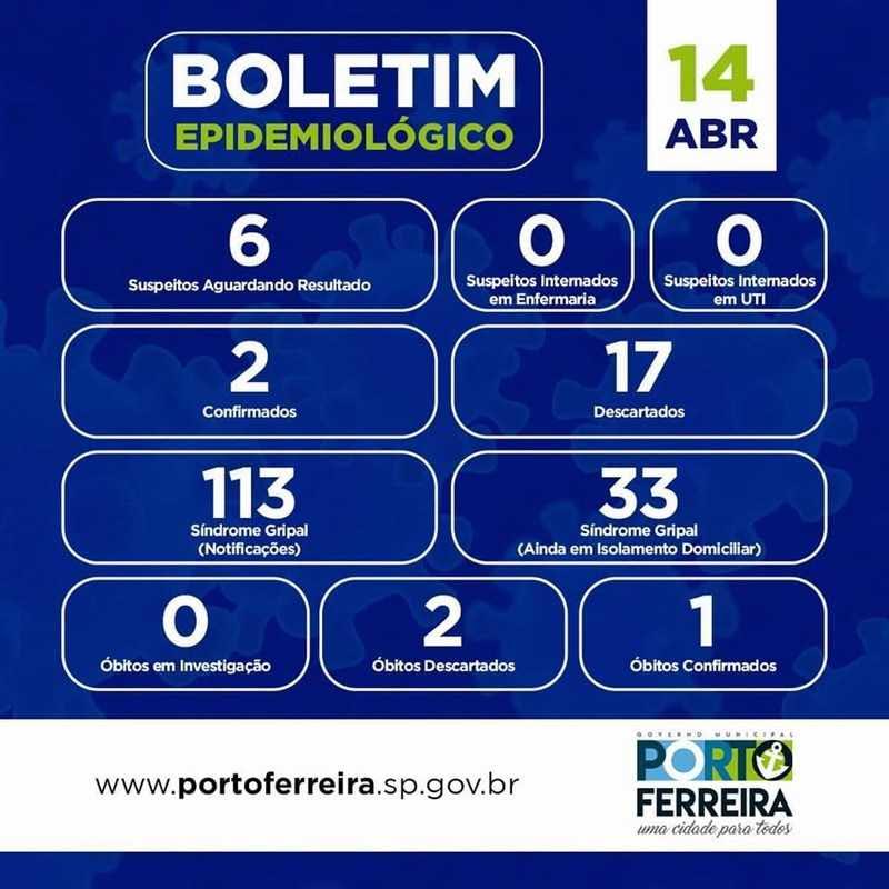 A Vigilância Epidemiológica da Secretaria de Saúde de Porto Ferreira divulgou nesta terça-feira (14/04) o Boletim Epidemiológico nº 21/2020, atendendo à determinação prevista no decreto municipal 1.281/2020.