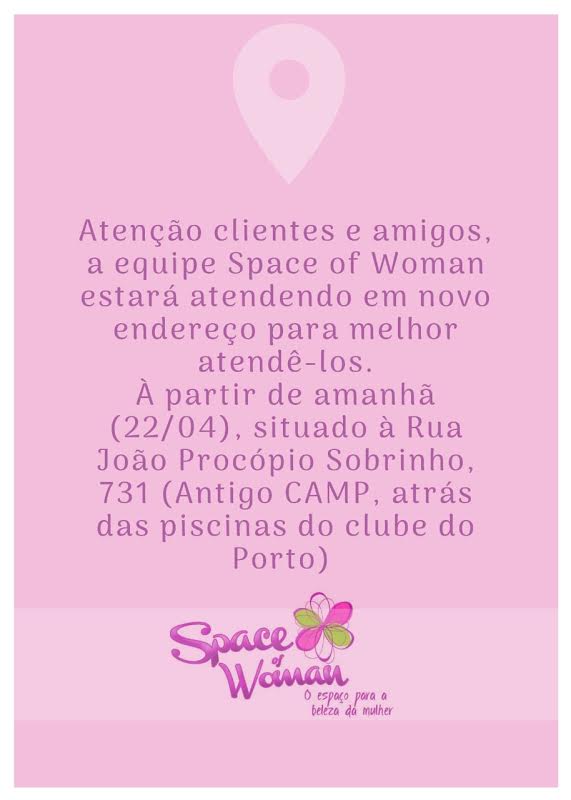 Atenção clientes e amigos, a equipe Space of Woman estará em novo endereço para melhor atendê-los.