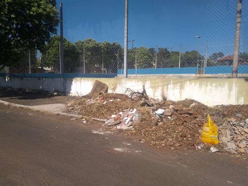 O que se fala na vizinhança é que houve uma pequena reforma na quadra. Só que deixaram os entulhos para trás. Restos de construção, folhagem seca que mostram o desleixo da atual administração.