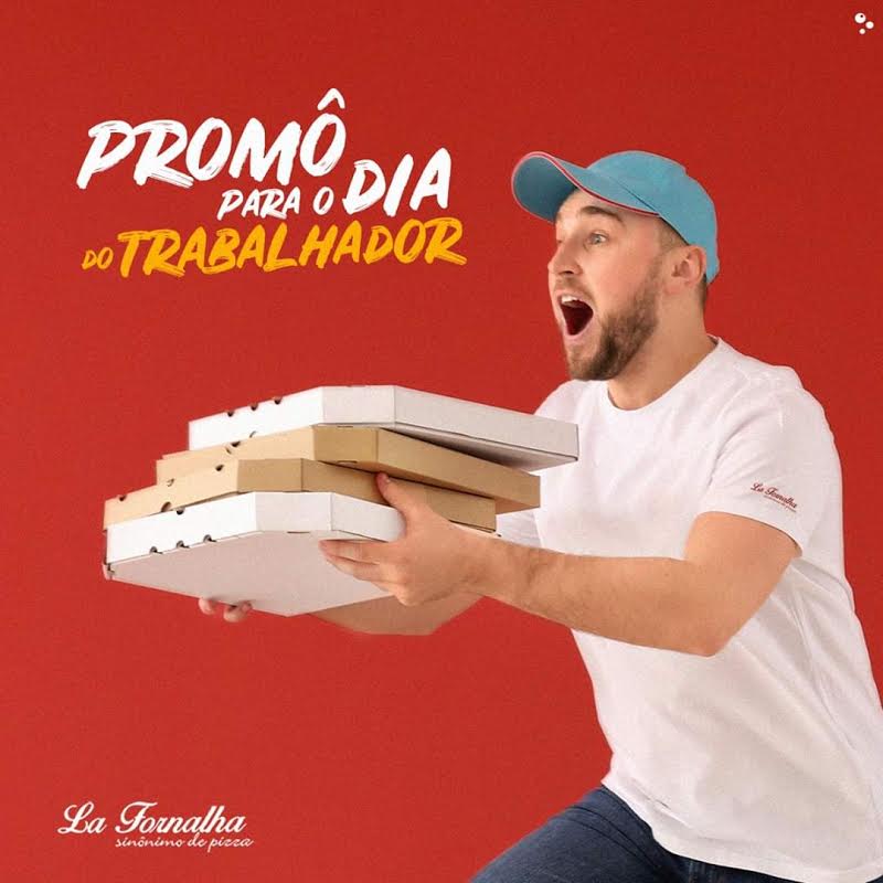 Hoje 01 de Maio em comemoração ao dia do Trabalhador, na compra de uma pizza Grande de Mussarela, Calabresa ou Catupiry, você paga valor da Pizza Média.