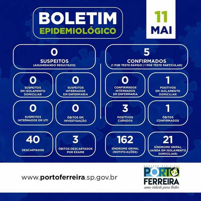 A Vigilância Epidemiológica da Secretaria de Saúde de Porto Ferreira divulgou nesta segunda-feira (11/05) o Boletim Epidemiológico nº 42/2020, atendendo à determinação prevista no decreto municipal 1.281/2020.