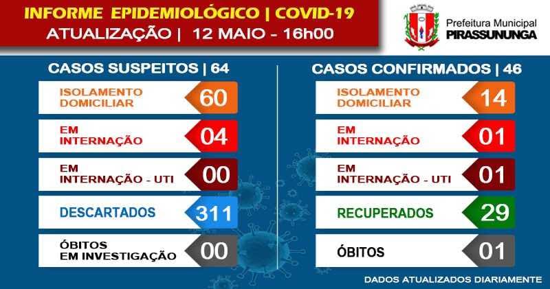No início da noite desta terça-feira, 12, a assessoria de imprensa da Prefeitura Municipal da cidade de Pirassununga/SP, divulgou os novos números do COVID – 19, enviados pela Secretaria Municipal de Saúde, dados enviados pela Vigilância Epidemiológica.