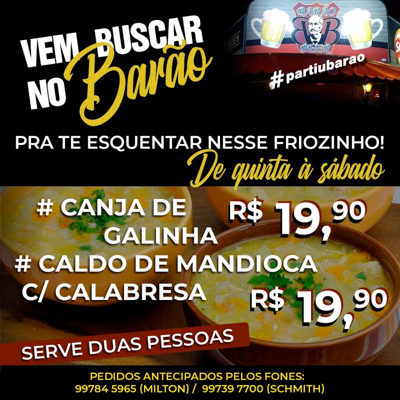 O Barão Estará atendendo no sistema "Drive Thru", peça e retire qualquer item do nosso cardápio com super promoções.