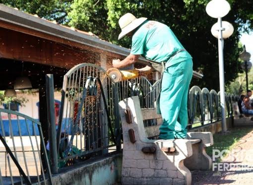 Os trabalhos de revitalização se iniciaram pela remoção do gradil ao longo de toda a extensão do Calçadão, que receberá a devida manutenção para posteriormente ser reinstalado.