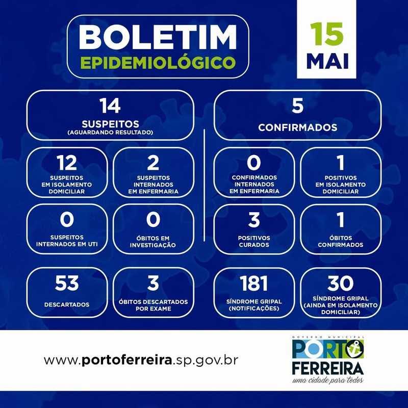A Vigilância Epidemiológica da Secretaria de Saúde de Porto Ferreira divulgou nesta sexta-feira (15/05) o Boletim Epidemiológico nº 46/2020, atendendo à determinação prevista no decreto municipal 1.281/2020.