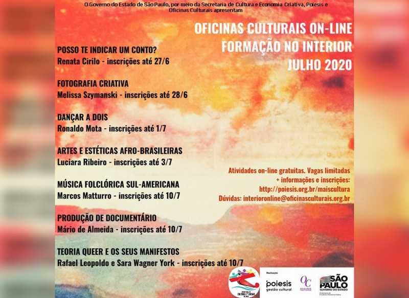A Secretaria da Cultura de Porto Ferreira recebe mais uma vez diversas oficinas on-line através da parceria com o projeto Oficinas Culturais da Secretaria de Cultura e Economia Criativa do Estado de São Paulo. São sete ações gratuitas de diversas modalidades culturais que já estão com inscrições abertas.