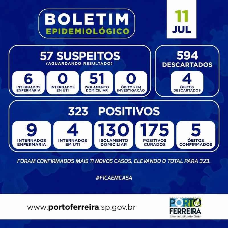 A Vigilância Epidemiológica da Secretaria de Saúde de Porto Ferreira divulgou neste sábado (11/07) o Boletim Epidemiológico nº 97/2020, atendendo à determinação prevista no decreto municipal 1.281/2020.