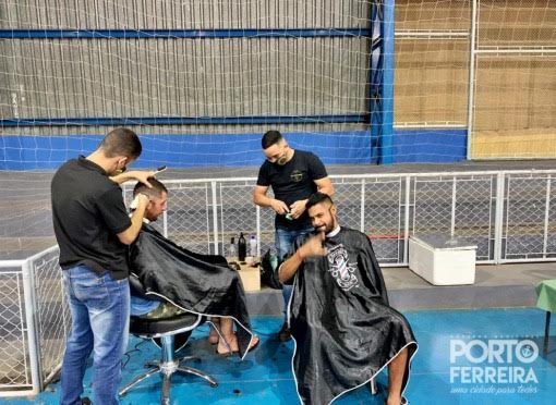 Na noite de segunda-feira (06/07) os barbeiros Deividi William Ribeiro, proprietário da Barbearia M.R. Ribeiro, e Luiz Felipe visitaram o Ginásio Municipal de Esportes Sylvio Marques Filho, no Jardim Primavera, que no momento está sendo usado como alojamento para pessoas em situação de rua.
