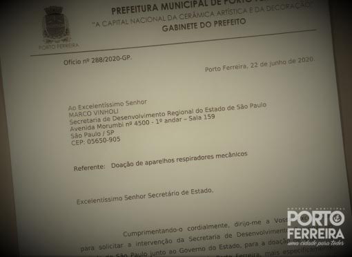 O prefeito Rômulo Rippa encaminhou um ofício à Secretaria de Desenvolvimento Regional do Estado de São Paulo, na pessoa do secretário Marco Vinholi, solicitando sua intervenção para que o governo paulista faça a doação de aparelhos respiradores mecânicos para o município de Porto Ferreira.