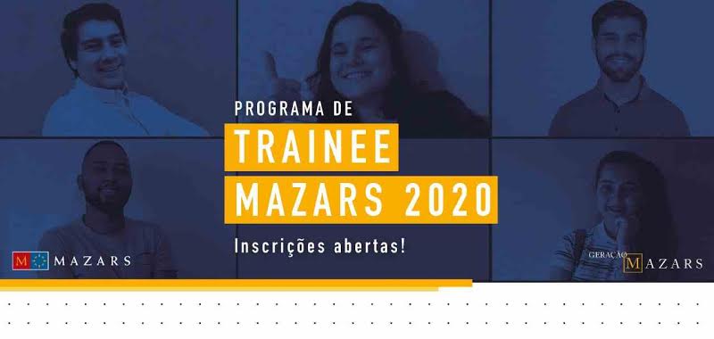 Os interessados podem fazer a inscrição até o dia 7 de agosto pelo link: http://por.mazars.com.br/Pagina-Inicial/Junte-se-a-nos2/Geracao-Mazars/Programa-de-Trainee-Mazars-2020.