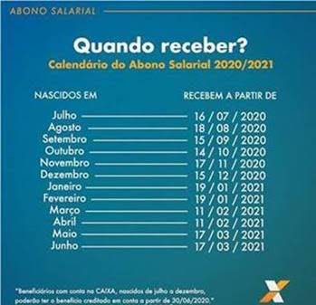 A consulta do direito ao benefício, bem como do valor disponibilizado, pode ser realizada por meio do app CAIXA Trabalhador, pelo atendimento CAIXA ao Cidadão – 0800 726 0207 e no site http://www.caixa.gov.br/abonosalarial/.