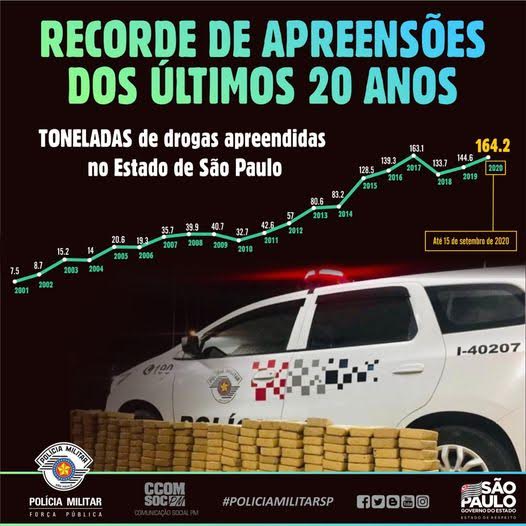 Nesse sentido, alcançamos o melhor patamar de apreensões de drogas dos últimos 20 anos. Isso é fruto de muito esforço desde o planejamento, trabalho incansável de bravos policiais na execução das ações diuturnamente e reconhecimento da sociedade diante dos resultados alcançados.