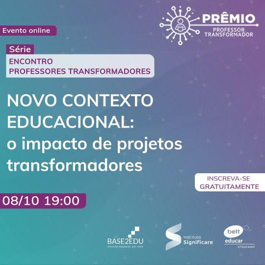 O encontro online é totalmente gratuito e será realizado no dia 8 de outubro, a partir das 19h, com o objetivo de discutir os impactos e dificuldades da abordagem de projetos na Educação, considerando o cenário atual e o futuro da sala de aula. Para participar, basta fazer a inscrição pelo link: http://bit.ly/professorestransformadores2