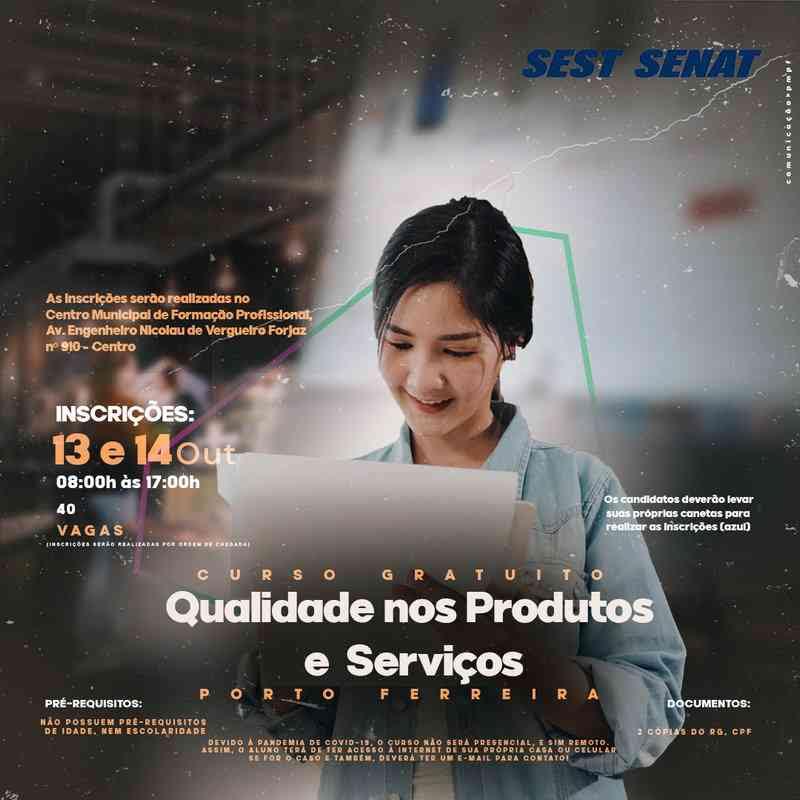 O curso de Qualidade nos produtos e serviços terá inscrições sendo feitas na terça e quarta-feira (13 e 14/10). São 20 horas de curso e 40 vagas disponíveis.