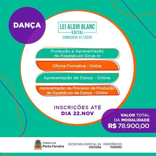 A modalidade Dança é uma das 10 áreas do Setor Cultural do Município que será beneficiada com os recursos federais da Lei Aldir Blanc.
