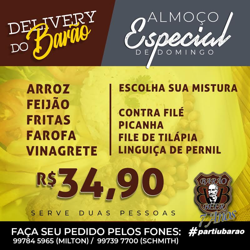Barão Beer – Domingo (01) de Novembro tem Almoço Especial no Barão Beer!