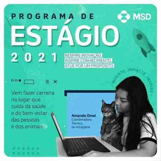 MSD Brasil está com inscrições abertas para o Programa de Estágio 2021, voltado a estudantes de Campinas, Cruzeiro e São Paulo (SP), Montes Claros (MG) e Aparecida de Goiânia (GO). Os interessados podem se candidatar até o dia 20 de novembro por meio do portal da 99 Jobs e a entrevista acontece on-line.