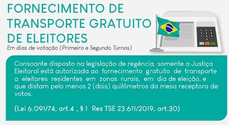 De acordo com a Lei 6.091/74 do TSE, é vedado aos candidatos ou órgãos partidários, ou a qualquer pessoa, o fornecimento deste transporte, sob risco de responsabilização criminal.