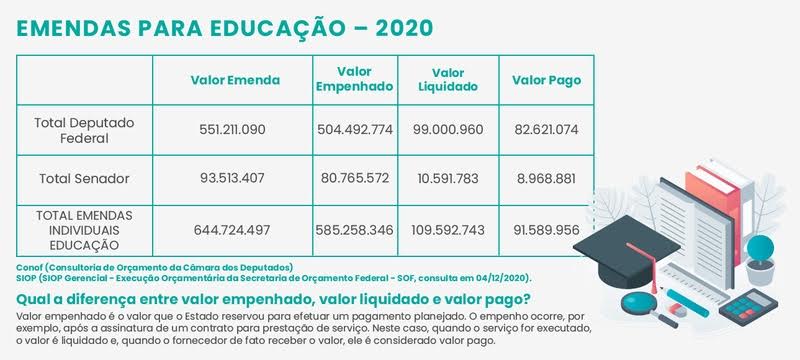 Em um ano, o pagamento de emendas parlamentares individuais ao Ministério da Educação aumentou em mais de 132%. Em 2020, até o momento, segundo o painel que monitora o orçamento federal, a pasta contou com cerca de R$ 91,5 milhões desses repasses que são propostos por deputados federais e senadores e executados pelo Governo Federal. Vale lembrar que o aumento ocorre antes do término do ano.