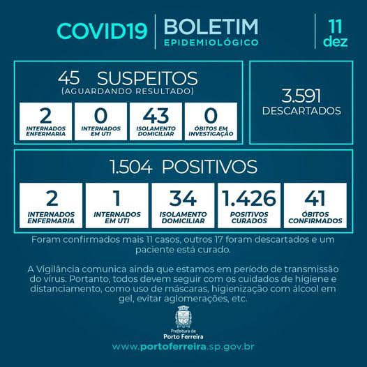 A Vigilância Epidemiológica da Secretaria de Saúde de Porto Ferreira divulgou nesta sexta-feira (11/12) o Boletim Epidemiológico nº 247/2020, atendendo à determinação prevista no decreto municipal 1.281/2020.