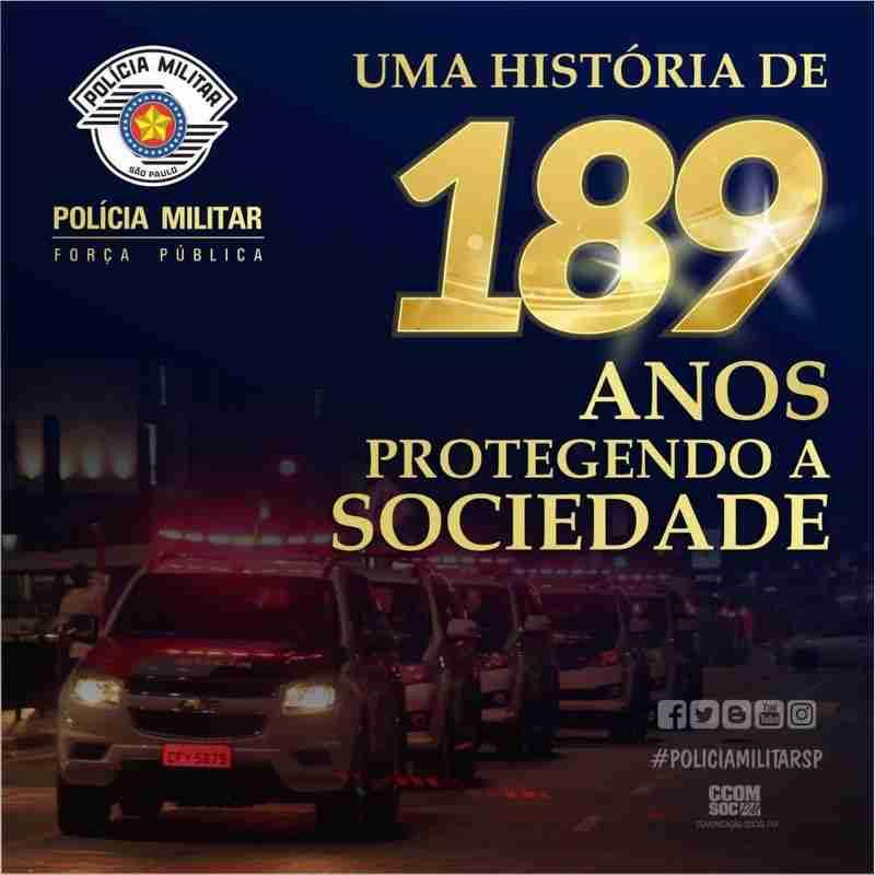 Em 189 anos de glórias, a Instituição garantidora dos direitos fundamentais também foi responsável pela preservação da paz social, mesmo diante de múltiplas dificuldades e intempéries. Se chegamos até aqui e pretendemos avançar muito mais, isso só foi e será possível graças a cada um dos nossos valorosos policiais militares, idealistas e vocacionados, que colocam a própria vida em risco para honrar a memória dos nossos ancestrais e em defesa da sociedade paulista.