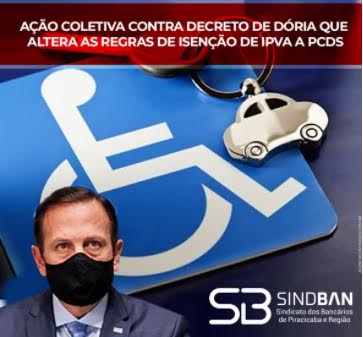 O Sindban Piracicaba vai entrar com ação coletiva contra decreto de Dória altera as regras de isenção de IPVA a PCDs.