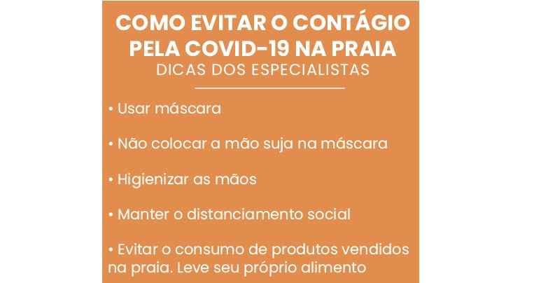 “Usar máscara, ficar em distanciamento daquelas pessoas que não fazem parte do seu grupo familiar, e evitar consumir produtos vendidos na praia, por conta da dificuldade de fazer a limpeza. Se puder levar seus próprios produtos, você diminuiria o risco”, aconselha.