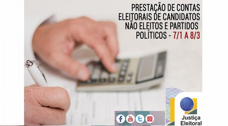 O dia 8 de março é a data limite para que os candidatos não eleitos e seus respectivos partidos políticos apresentem, presencialmente, a documentação comprobatória referente às suas prestações de contas eleitorais. A contagem do prazo de 60 dias teve início na última quinta-feira (07/01).