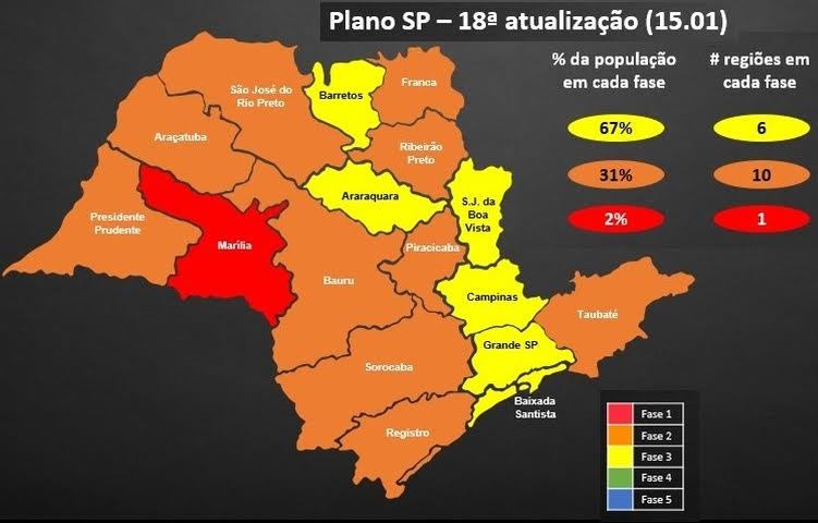 As cidades de Porto Ferreira (DRS III – Araraquara), Santa Cruz das Palmeiras e Tambaú ( DRS XIV – São João da Boa Vista) estão classificadas na Fase Amarela, já Pirassununga (DRS X – Piracicaba) e Santa Rita(DRS XIII – Ribeirão Preto) estão na Fase Laranja. Vejam o resumo das regras por Fase: