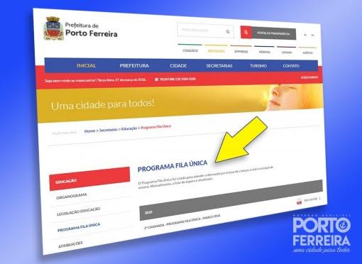 A relação está no site oficial do município (www.portoferreira.sp.gov.br). O documento se encontra em Secretarias > Educação > Programa Fila Única, ou diretamente na página https://www.portoferreira.sp.gov.br/secretarias/educacao/arquivos/programa-fila-unica.