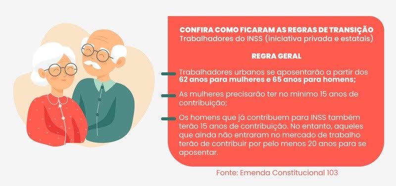 Porém, vale lembrar que a reforma também estabelece idade mínima e tempo mínimo de contribuição para homens e mulheres. A segunda regra de transição, que começou a vigorar no primeiro dia deste ano, fixou uma nova idade mínima às pessoas com longo tempo de contribuição, sendo 57 anos às mulheres e 62 anos aos homens.