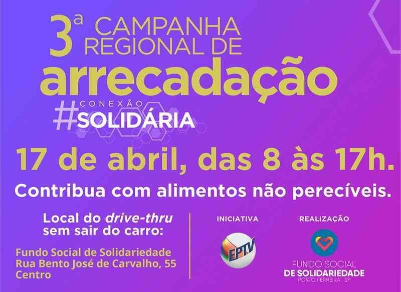 Hoje, sábado (17/04), acontece a Campanha Regional de Arrecadação do Conexão Solidária promovida pela EPTV, em parceria com o Fundo Social de Solidariedade de Porto Ferreira