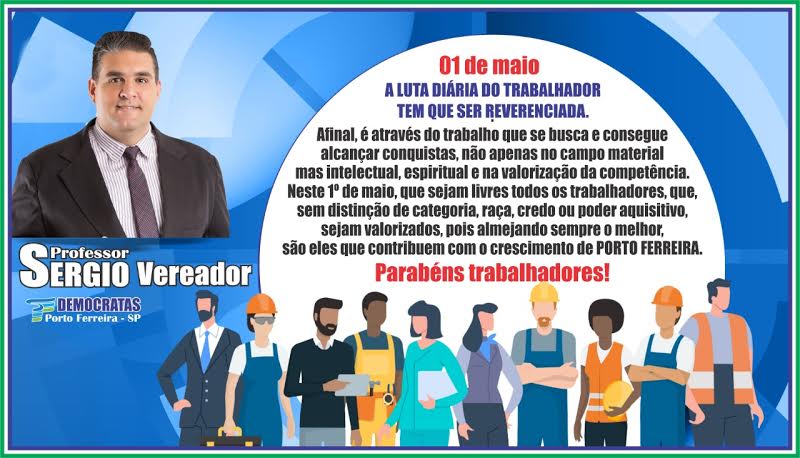 Neste 1º de Maio, que sejam livres todos os trabalhadores, que sem distinção de categoria, raça, credo ou poder aquisitivo, sejam valorizados, pois almejando sempre o melhor, são eles que contribuem com o cresciemnto de Porto Ferreira.