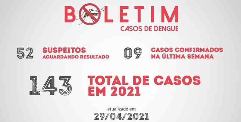 Até agora são 39 casos confirmados em abril, contra 70 em março, 33 em fevereiro e apenas um em janeiro. A equipe de endemias segue com a aplicação de inseticida com nebulizador portátil nos imóveis já finalizados em ações de controle de criadouros em bairros, com a finalidade de eliminar os insetos adultos que podem estar contaminados com o vírus dengue e transmitindo pela picada a outras pessoas, ainda suscetíveis aos vírus circulantes, tipos 1 e 2.