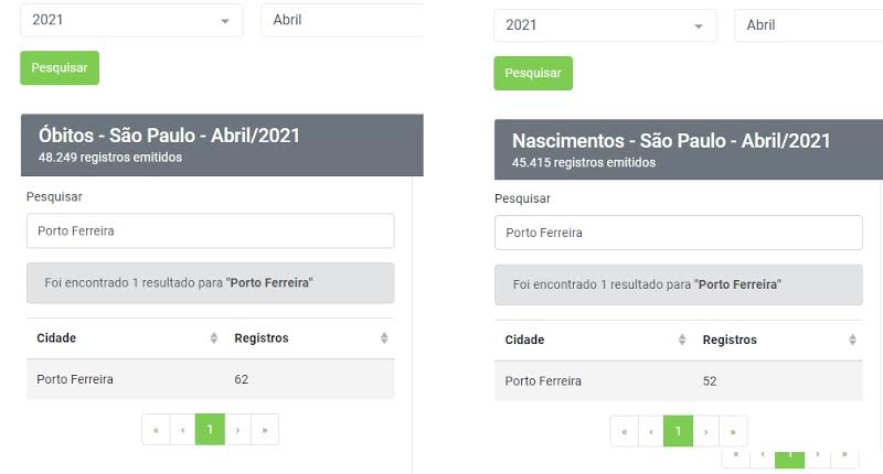 Dados de abril do Portal da Transparência do Registro Civil apontam movimento inédito no município de Porto Ferreira, o qual apresentou maior número de mortes em comparação com o número de nascimentos.