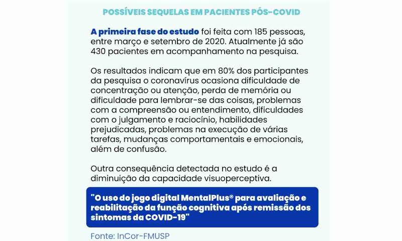 A infectologista Ana Helena Germoglio explica que, apesar do novo coronavírus ser um vírus respiratório, ele pode gerar comprometimento de, praticamente, todos os sistemas. “A síndrome pós-Covid, sem dúvida, será mais um desafio para os sistemas de saúde de todo o mundo. Vários tipos de sequelas — neurológicas, musculares, cardíacas, pulmonares — levam a necessidade de tratamento, ou reabilitação, prolongado, às vezes permanente”, detalha.