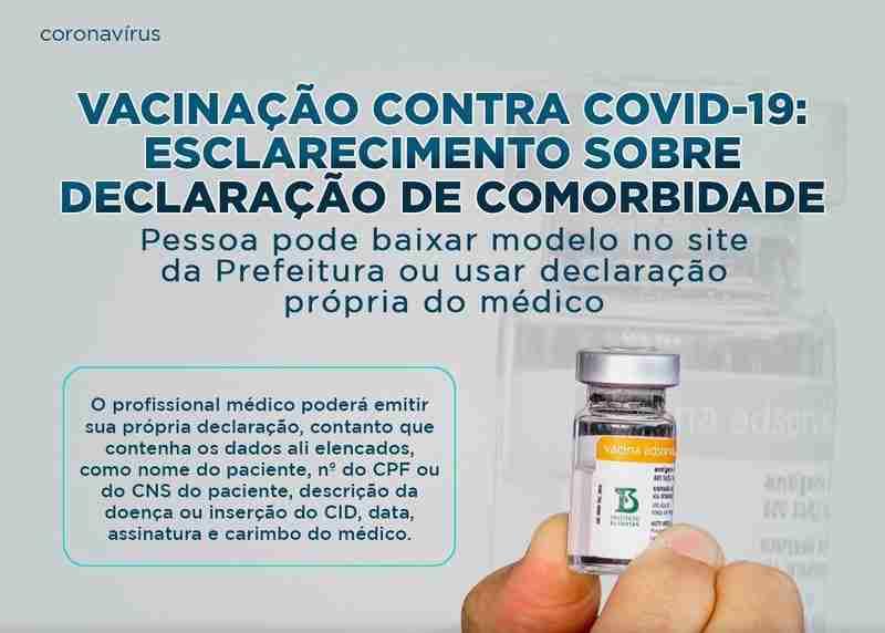 Para realizar a aplicação, a pessoa deve apresentar um documento de identidade com foto e CPF. Também será solicitada Declaração para Comorbidades, que deverá ser assinada pelo(a) médico(a) do(a) paciente.