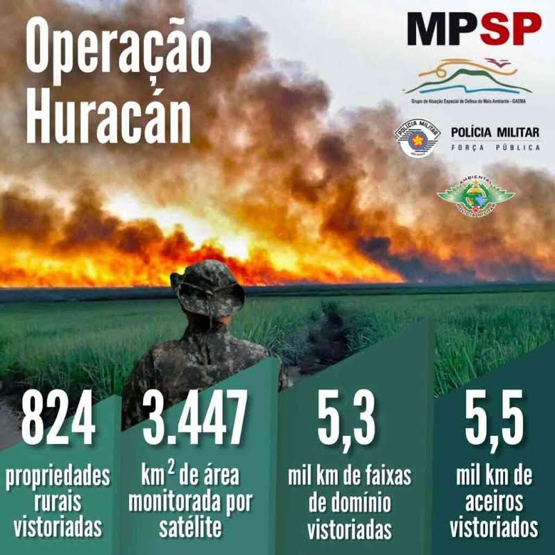Realizada no período de 10 a 12 de maio a “Operação Huracan” foi desencadeada pela Polícia Militar Ambiental e Ministério Público de São Paulo em todo Estado e contou com o emprego de 520 policiais militares e Promotores de Justiça do GAEMA.