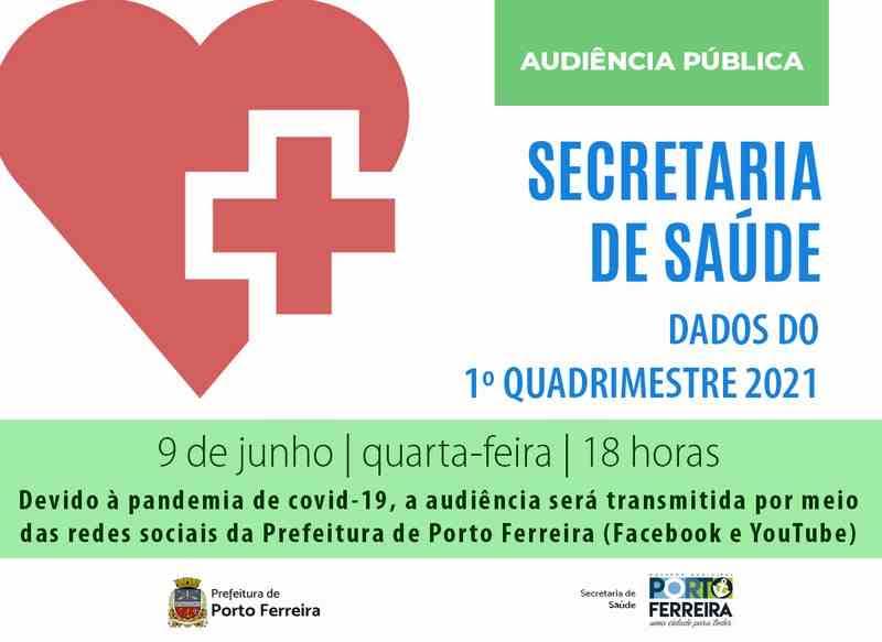 A Secretaria de Saúde de Porto Ferreira realiza nesta quarta-feira (09/06), a partir das 18 horas, a audiência pública de prestação de contas relativa ao primeiro quadrimestre de 2021.