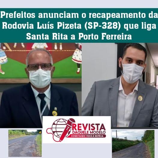 Os Prefeitos Marcelo Simão (Santa Rita) e Rômulo Rippa (Porto Ferreira), participaram nesta segunda-feira (21) no Palácio dos Bandeirantes em São Paulo, da cerimônia de lançamento do programa Estrada Asfaltada, do governo estadual, onde ficaram sabedo que a rodovia conhecida como Estrada Velha Porto-santa Rita, a Rodovia Luís Pizeta (SP-328) está entre as vias estaduais contempladas pelo programa. O anúncio foi realizado pelo governador João Doria, e o programa busca levar melhorias em rodovias de todo o estado com a projeção de modernizar 2,3 mil quilômetros de vias em 196 cidades paulistas.