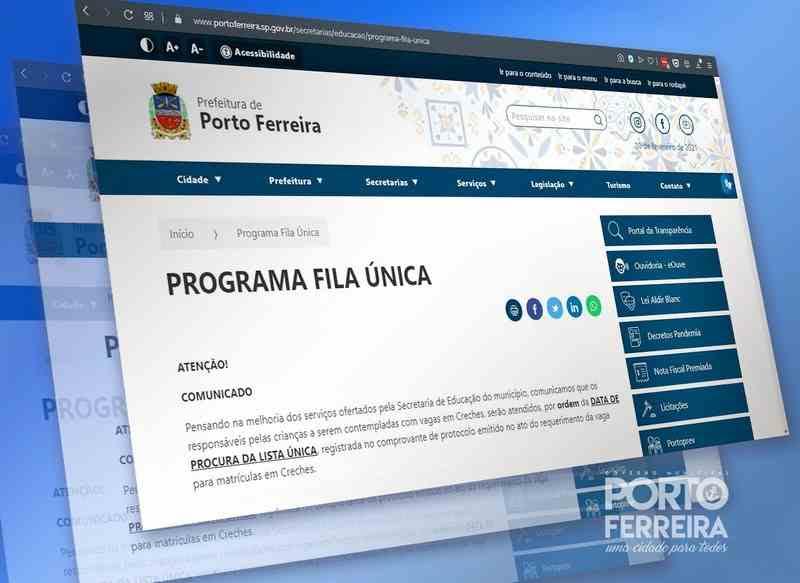 A relação está no site oficial do município (www.portoferreira.sp.gov.br). O documento se encontra em Secretarias > Educação > Programa Fila Única, ou diretamente na página https://www.portoferreira.sp.gov.br/secretarias/educacao/programa-fila-unica