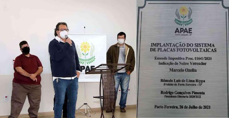 O vereador Marcelo Ozelim (Progressistas) participou, na segunda-feira (26/07), da inauguração do sistema de placas fotovoltaicas da Associação de Pais e Amigos dos Excepcionais (APAE) de Porto Ferreira.