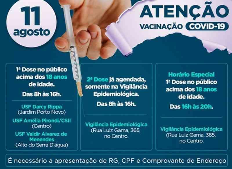 • A unidade da Vigilância Epidemiológica ficará apenas com a aplicação das segundas doses no horário das 8h às 16h.