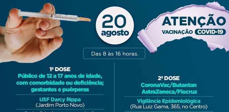 A Vigilância Epidemiológica de Porto Ferreira informa como será o esquema de vacinação contra a covid-19 nesta sexta-feira (20/08).