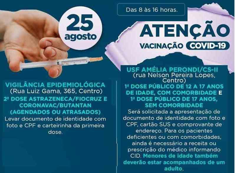 - Levar documento de identidade com foto e CPF e carteirinha da primeira dose.