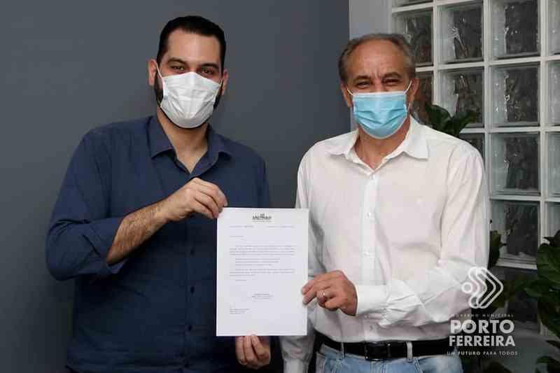 Na última sexta-feira (27/08) o prefeito Rômulo Rippa recebeu em seu Gabinete o ex-presidente da Câmara Municipal e atual ouvidor da Agência Reguladora de Porto Ferreira, Gustavo Braga Coluci, portador da notícia sobre a liberação de R$ 250 mil para custeio das ações de enfrentamento à pandemia de covid-19 em Porto Ferreira.